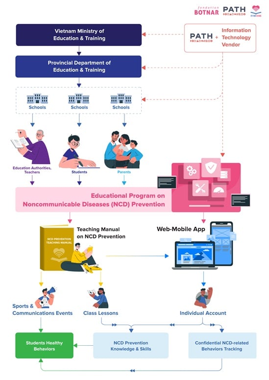 70% of premature deaths in adults are associated with behaviours that start in adolescence. Since 2021, PATH and the Ministry of Education and Training (MOET) has implemented the project “Leveraging Data and Frontier Technologies to Build a Noncommunicable Disease Program for Youth, with Youth” to address noncommunicable disease (NCD) risk behaviors among Vietnamese youth.